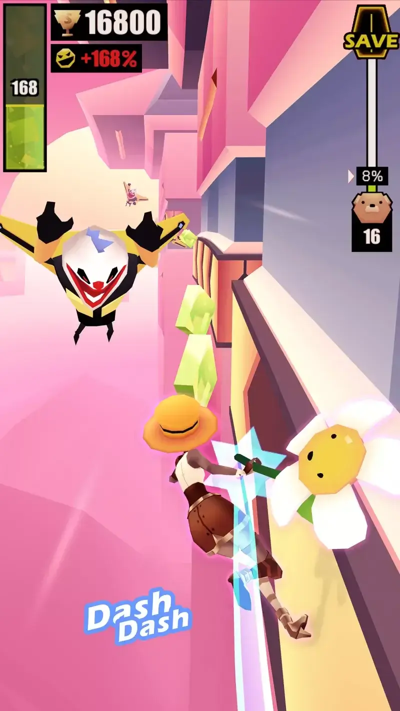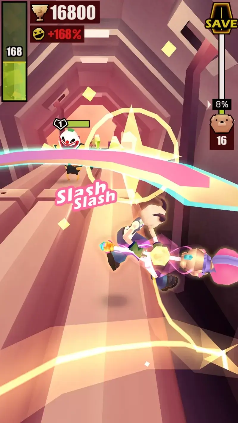 В Slash & Girl - Joker World вам предстоит бежать вперед по трехполосной локации, ловко уворачиваться от соперников, разрушать преграды, собирать бонусы и очки.